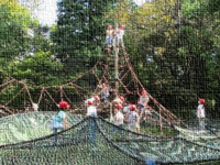 アスレチックでは、グループごとに声をかけ合いながら様々な遊具に挑戦しました。