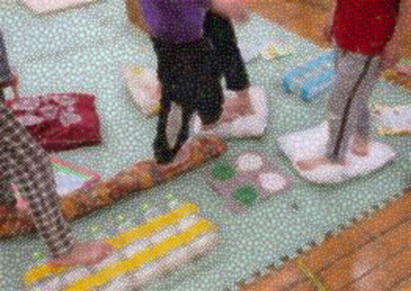 ご用意いただいたたくさんの教材・教具を使い、身体のバランスをとったり、身体の軸を感じたりするような様々な運動遊びに取り組みました。
