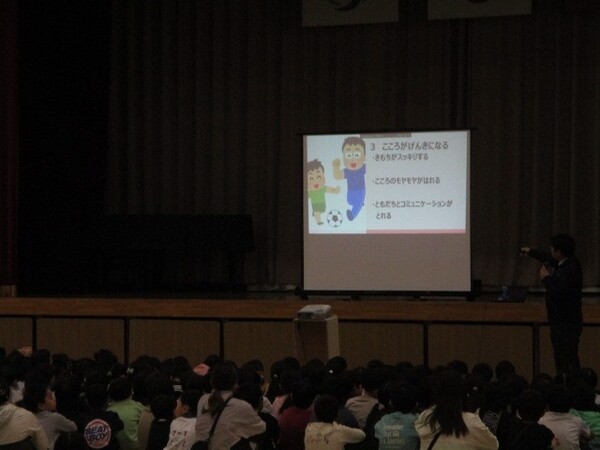 校長講話では、「運動することの大切さ」をテーマとし、運動は、体がじょうぶになること、心が元気になることなどに役立つことを伝え、外遊びを推奨しました。