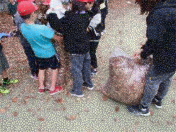1・3・6年生・たんぽぽ学級の児童と保護者の皆様の協力により、たくさんの落ち葉を集め、校庭や道路がきれいになりました。